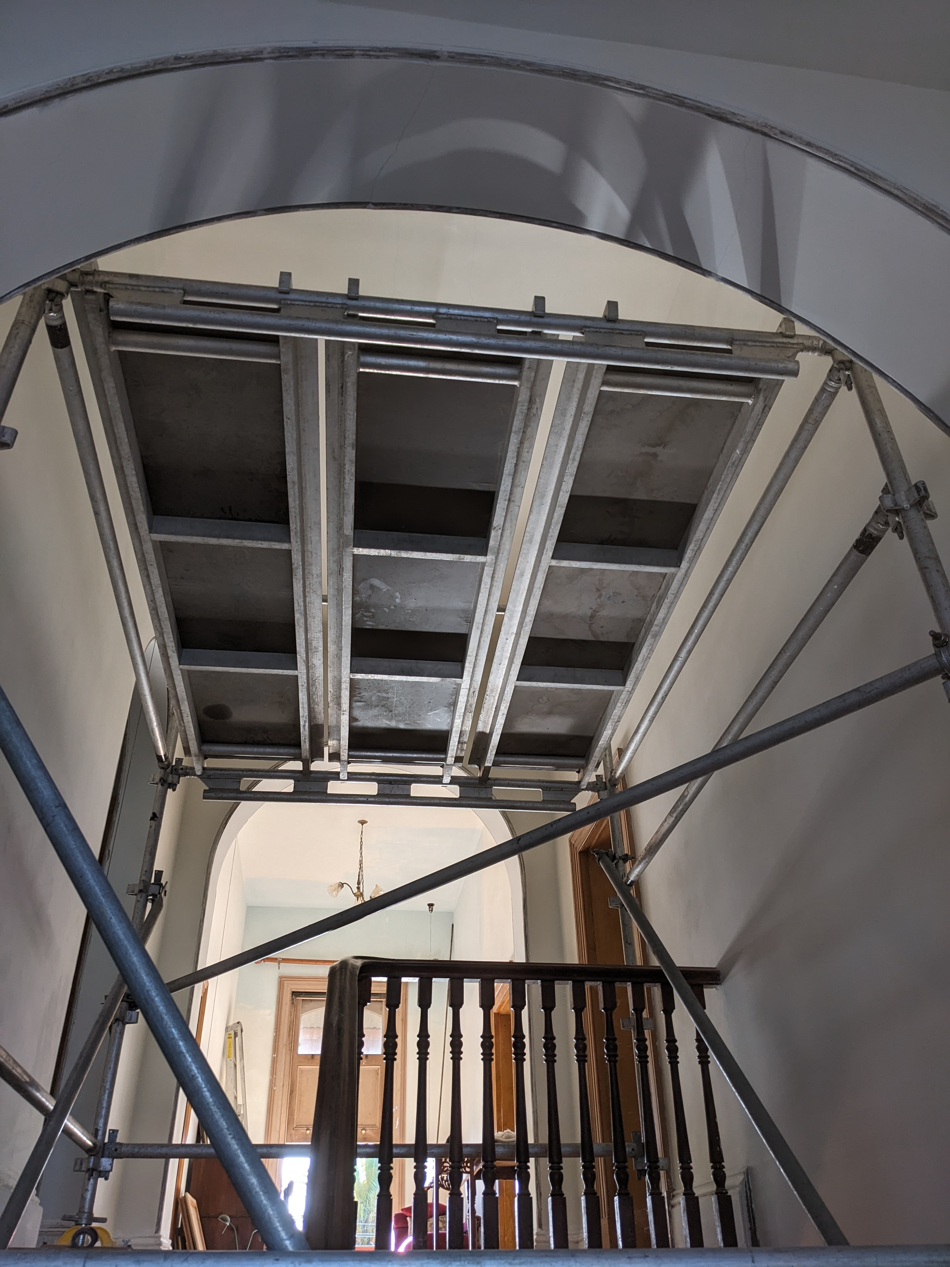 Thursday, and Matt the scaffolder came to have another look at the stairway - and yes he'll come back on the 16th to set it all up - in preparation for Fraser & Rileigh to paint the stairway