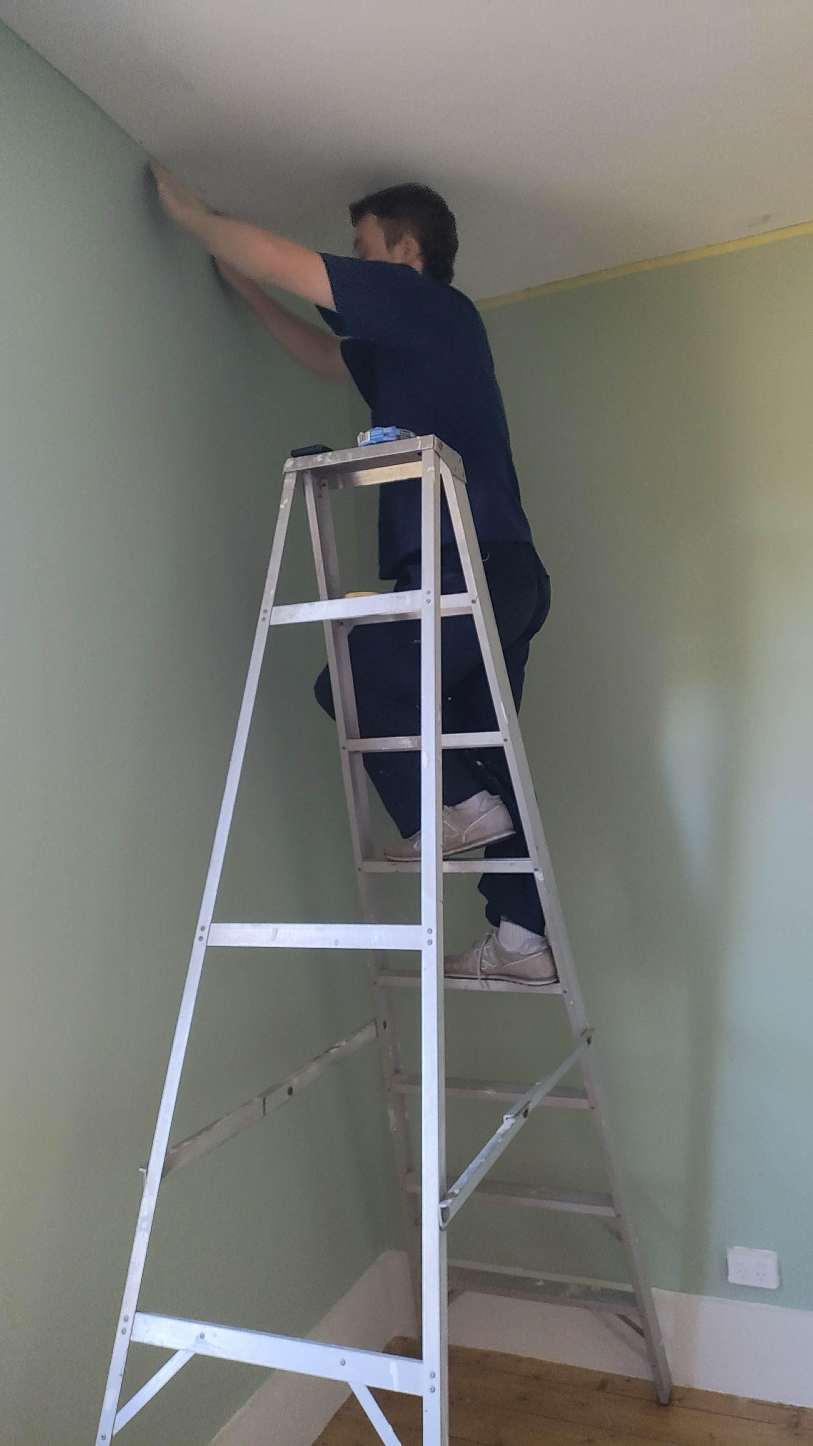The three of us had some lunch - and Fraser continued with painting the ceiling in the music room (but first had to tape it)